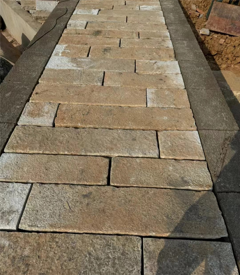 黄砂岩景观条石厂家 古典欧式 老石板石材 老条石地面作为一种传统而经典的地面铺装形式,有着独特的魅力和价值。