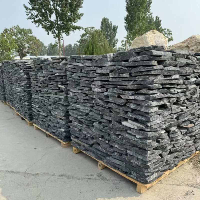 黑色文化石装饰 天然蘑菇石贴面 装饰背景 青石板花岗岩碎拼石以其天然的色泽与独特的拼接艺术,在建筑装饰领域展现出bu可替代的魅力。从视觉效果来看,青石板碎拼石自带古朴典雅的气质,其灰青色系犹如水墨画般淡雅悠远,或深或浅的色调相互交织,呈现出自然随性的美感。不规则的碎块拼接打破传统石材的规整感,形成疏密有致、极具韵律的图案,既保留了青石板原始粗犷的自然风貌,又增添了艺术创作的灵动性,无论是用于江南园林的曲径通幽处,还是现代庭院的休闲角落,都能营造出宁静、雅致的氛围,成为空间中独特的视觉焦点。在材质性能方面,青石板碎拼石继承了青石板的优良特性。它质地坚硬密实,具有出色的抗压性和耐磨性,能够承受长期的行人踩踏和轻微车辆碾压,适用于公园步道、广场等人流量较大的场所。同时,青石板碎拼石耐候性极jia,在风吹日晒、雨淋霜冻等自然环境下,不易出现褪色、变形或开裂现象,长久保持石材的稳定性和美观度;其防滑性能也十分突出,表面天然的凹凸纹理和碎拼形成的细微缝隙,即使在潮湿环境下也能提供良好的摩擦力,保障行人安全。此外,青石板属于天然环保石材,无放射性污染,碎拼的施工方式还能最da化利用石材,减少边角料浪费,符合绿色环保理念。在施工与维护上,青石板碎拼石具有显著优势。施工过程中,不规则的碎块可灵活适应不同形状和尺寸的区域,尤其适合异形空间或曲线造型的铺设,无需复杂的切割工艺,降低施工难度和成本。多样化的拼接方式,如冰裂纹、乱拼等,可根据设计需求自由组合,创造出丰富的视觉效果。日常维护也较为轻松,其表面孔隙细小,污渍不易渗透,只需定期清扫灰尘、用清水冲洗,就能保持干净整洁,大大降低了后期维护的时间和精力成本,让青石板碎拼石的自然之美历久弥新。