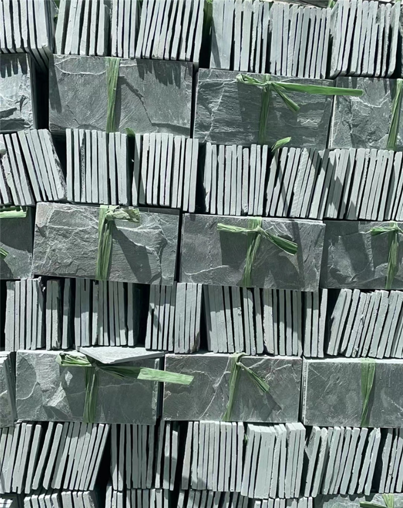?绿色板岩碎拼文化石 碧水青山天然绿石英 青色蘑菇石景墙颜色多为青灰、青蓝等,色泽自然古朴,表面纹理丰富,如同大自然的艺术画作。凸出的装饰面形似蘑菇,给人一种独特的视觉感受。具有较高的硬度和强度,耐磨性好,抗压能力强,能承受较大的压力和重量,不易变形和损坏。属于天然石材,无辐射,对环境无污染,符合人们追求自然、健康的生活理念。可用于别墅、酒店、民宿等建筑的外墙装修,营造出古朴、典雅的建筑风格,提升建筑的整体美观度。在公园、庭院、花园等园林景观中,可用于铺设地面、打造景观墙、堆砌假山等,增添自然氛围。在一些追求自然风格的室内装修中,可用于客厅、餐厅、卫生间等区域的墙面或地面装饰,展现独特的个性和品味。