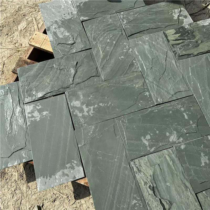 青色蘑菇石景墙 绿色板岩碎拼文化石 碧水青山天然绿石英主要成分是二氧化硅,常含微量的铁、钛、铝等杂质元素,还可能含有绿帘石等绿色矿物成分,使其呈现绿色。氏硬度为7,硬度较高,耐磨性好,不易被刮花。颜色多为淡绿、翠绿、草绿等,色调均匀或有深浅变化,常呈透明至半透明状,具有玻璃光泽,晶体形态多样。在岩浆冷却结晶过程中,当硅质岩浆富含硅、氧等元素,且在特定的温度、压力条件下,硅氧四面体有序排列形成石英晶体,若此时有铁、铬等致色元素参与,就可能形成天然绿石英。原有的岩石在高温、高压及化学活动性流体的作用下发生变质,其中的石英成分在变质过程中重新结晶,同时周围环境中的绿色矿物成分渗入,使石英呈现绿色。