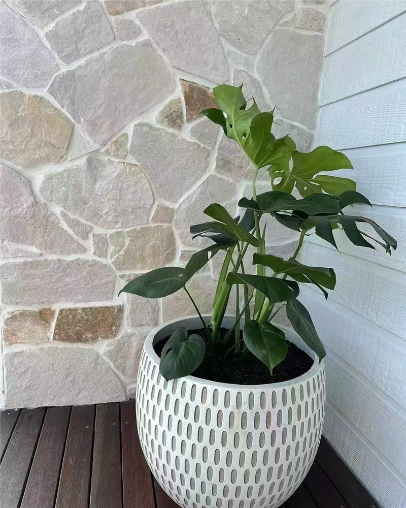 纯白北欧 白砂岩碎拼石 白石英文化石墙面 天然毛石板保留了大自然最本真的痕迹,散发着质朴纯粹的魅力。其颜色丰富多样,从沉稳的灰色、深邃的蓝色,到温暖的黄色、柔和的粉色等,每种色彩都源于自然的造化,能与各类环境完美融合,营造出或宁静或活泼的氛围。纹理更是千变万化,有的如潺潺溪流般蜿蜒曲折,有的似崇山峻岭般层峦叠嶂,每一块石板的纹理都是独特的自然杰作,为空间增添独特的艺术气息。在材质特性上,天然毛石板质地坚硬,具有出色的耐磨性和抗压性,能经受住长期的踩踏与各类外力冲击,确保使用的耐久性。其表面呈现出自然的毛糙质感,不仅增加了摩擦力,在用于地面铺设时可有效防滑,保障安全,还带来独特的触感,让人感受到大自然的粗粝与真实。而且,天然毛石板的尺寸规格灵活,可根据实际需求进行切割和加工,无论是大面积铺设打造开阔空间,还是小范围点缀增添局部亮点,都能轻松实现。