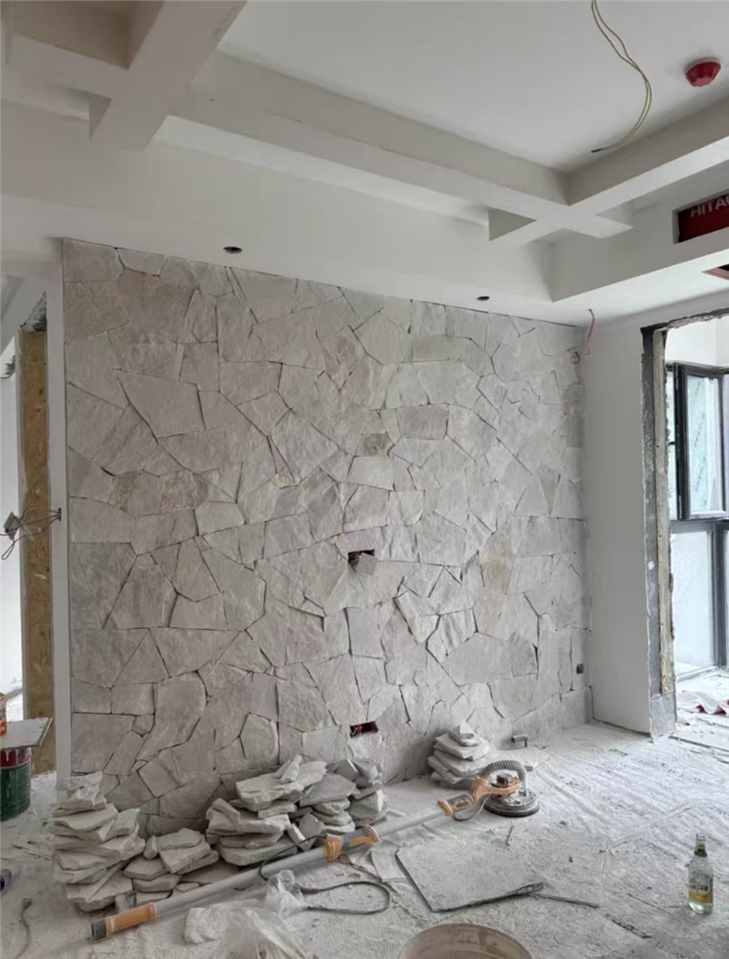 白石英文化石墙面 天然毛石板 纯白北欧 白砂岩碎拼石自然之韵在方寸间的诗意栖居在装修自家小院时,我偶然接触到白砂岩碎拼石这种材料。从最初对它的质朴外观感到新奇,到亲历施工过程并见证最终效果,这段经历让我深刻体会到这种天然石材在营造空间氛围中的独特魅力。