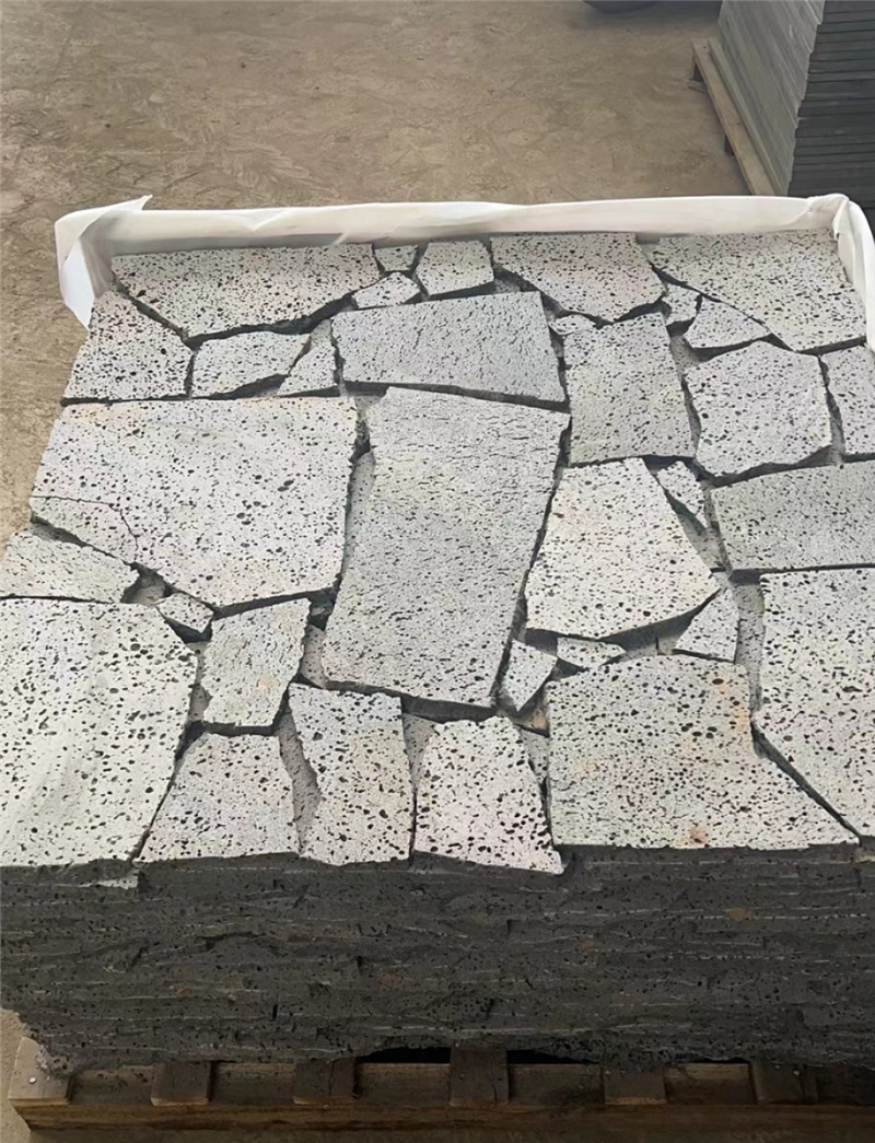 冰裂纹碎拼石 建筑外墙 黑色火山岩蘑菇石 灰褐色火山石文化石,是火山喷发后凝固的地质诗篇,它裹挟着亿万年前地球内部的炽热能量,以独特的纹理与质感,成为自然馈赠给人类的多功能材料。其色调介于灰的沉稳与褐的深邃之间,仿佛将黄昏的云霞与山峦的轮廓凝固于石体,既有岁月沉淀的厚重感,又暗藏自然造物的灵动气息。
