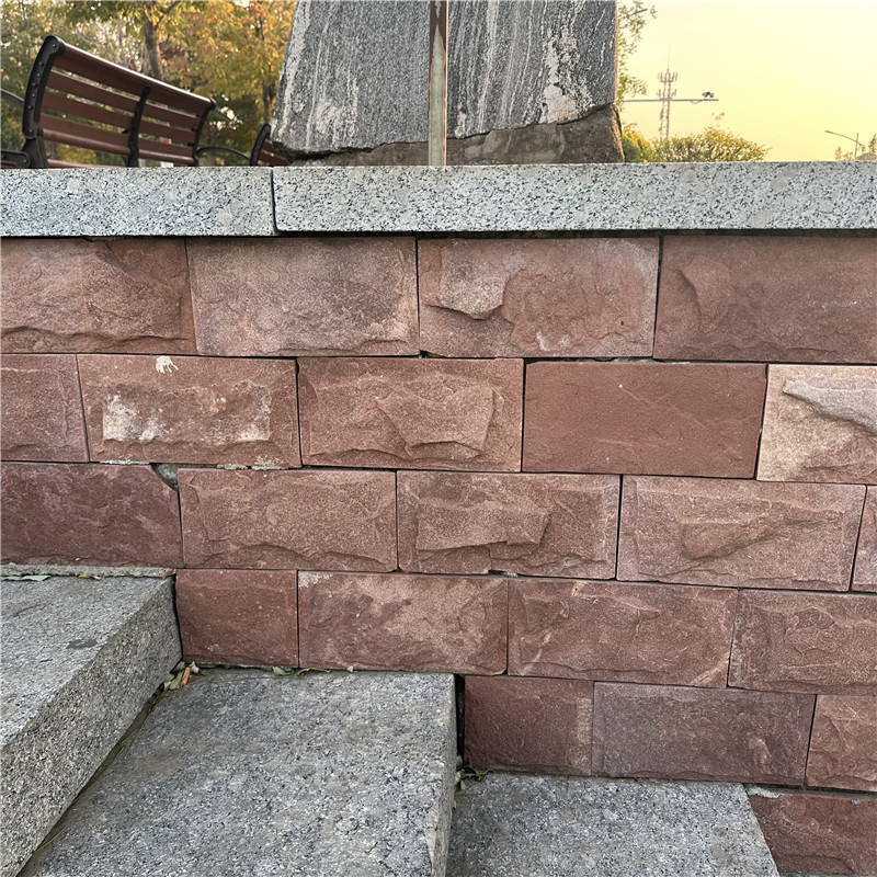 在装饰应用上,高粱红蘑菇石有着广泛的用途。在庭院景观中,将其铺设成蜿蜒小径,高低错落的石块与两旁绿植相互映衬,营造出曲径通幽的野趣;砌筑成景墙、花坛,浓烈的红色与翠绿植物形成鲜明对比,勾勒出 “万绿丛中一点红” 的视觉焦点。在建筑外立面设计中,高粱红蘑菇石常被用于打造复古工业风或新中式风格建筑,与深色金属框架、木质格栅搭配,碰撞出传统与现代交融的独特美感。在商业空间如火锅店、特色民宿中,以蘑菇石作为背景墙或吧台装饰,搭配暖黄灯光与皮质软装,瞬间营造出热情洋溢、充满烟火气的氛围。室内装修时,高粱红蘑菇石还可用于电视背景墙、壁炉装饰等,粗犷的质感与艳丽的色彩能瞬间提升空间格调,成为视觉中心。