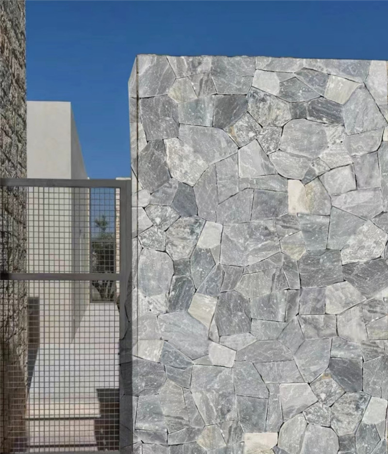 宝石蓝乱形石 清莱蓝庙 蓝石英碎拼石 天然文化石城堡石模仿城堡建筑的石块造型,有不规则的四边形、多边形等,边缘较为粗糙,有自然断裂的痕迹,给人一种古朴、厚重的感觉。纹理丰富多样,有的如岩石的层理,有的像不规则的裂纹,每一块石头的纹理都独特,呈现出自然的沧桑感。常见颜色有灰色、米黄色、褐色等,这些颜色较为自然质朴,能够与各种建筑风格和环境相融合。质地坚硬,摩氏硬度较高,具有良好的耐磨性和抗压性,能够承受一定的重量和压力,不易被刮花或损坏。具备较强的耐候性,能抵御风吹、日晒、雨淋等自然因素的侵蚀,不易褪色、变色或变形,可长期保持美观。吸水率较低,能有效防止水分渗透,避免因潮湿而引发的石材病变,如发霉、变色、开裂等。具有天然的质感和纹理,能够为建筑和景观增添自然、古朴的氛围,营造出独特的视觉效果,展现出与众不同的韵味。采用天然石材加工而成,不含有害物质,对环境和人体健康无害,是一种绿色环保的装饰材料。一般可以利用矿山开采废料加工,材料成本和加工费用较di,价格相对便宜,而且安装简单,可降低装修成本。