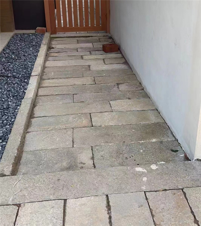 从材质特性来看,青石老石条质地坚硬密实,属于石灰岩的一种,具有良好的抗压性与耐磨性,即便历经岁月侵蚀,依然保持着稳固的结构和较高的强度,适用于多种场景。其天然的孔隙结构赋予了一定的透气性,能调节局部湿度,减少水渍残留;同时,青石的耐酸碱、抗风化能力出色,即便长期暴露在户外环境中,也不易发生质变,只需简单维护便能长久使用。