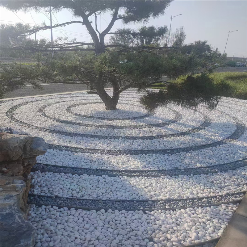 在布局设计上,鹅卵石常以 “以石代水” 的手法构建核心景观。日式枯山水花园中,灰bai鹅卵石铺就的 “枯溪”“旱池”,通过耙制出的同心圆、波浪纹模拟水流形态,搭配石灯笼、苔藓与造型松,营造出静谧空灵的禅意空间;中式园林里,鹅卵石与青砖、瓦片拼贴成 “冰裂纹”“海棠纹” 等传统图案,铺设成蜿蜒小径,穿梭于亭台楼阁、花草树木之间,引导游人信步其中,感受移步换景的东方美学。现代风格的花园则更注重几何线条与自然材质的碰撞,黑色鹅卵石与白色碎石以流线型分区,搭配不锈钢水景与抽象雕塑,打造出时尚简约的艺术氛围。
