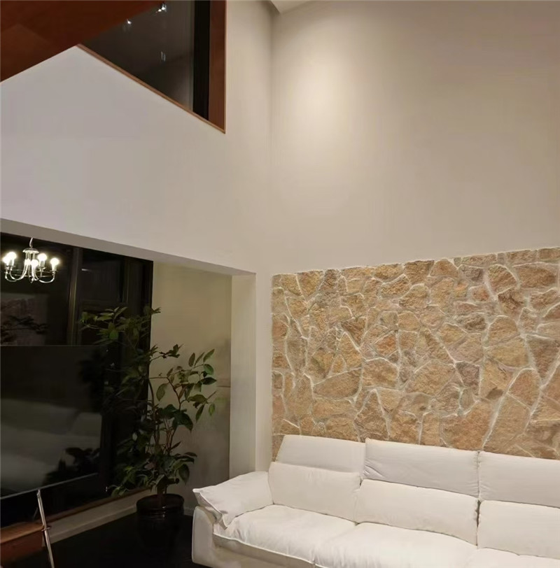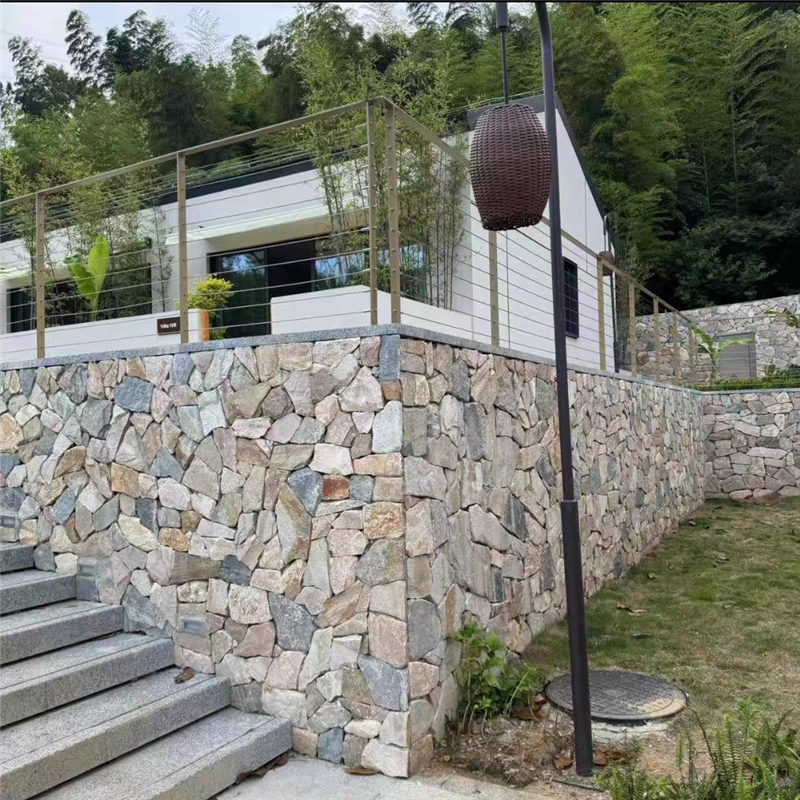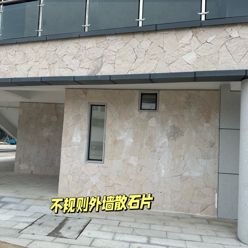 从物理特性来看,天然乱石片多由花岗岩、砂岩、板岩等硬质石材经爆破、自然风化或机械破碎形成,质地坚硬密实,莫氏硬度可达 6-7 级,具备出色的抗压与耐磨性能,适用于地面、墙面、景观小品等多种场景。因其不规则的外形,乱石片在拼接时需通过工匠手工筛选、巧妙组合,利用水泥砂浆或石材胶填充缝隙,形成犬牙交错的稳固结构,既能抵御长期外力冲击,又能展现自然随性的美感。虽然表面孔隙较多、吸水性强,但经过防水防污处理后,可有效防止污渍渗透与风化侵蚀,同时保留石材天然的透气性与原始肌理。此外,其凹凸不平的表面在潮湿环境下具有良好的防滑性能,增强了使用安全性。