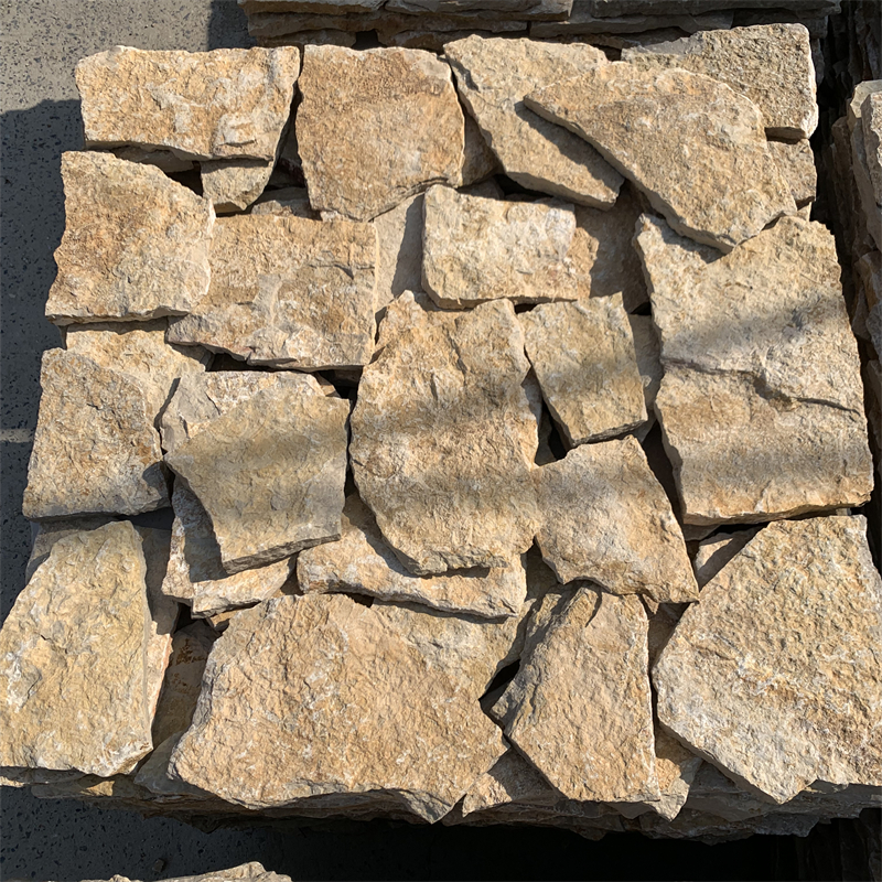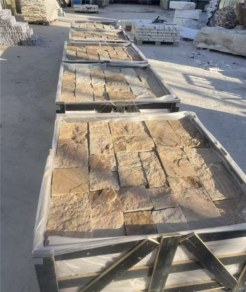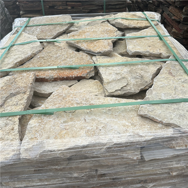 黄锈石碎拼地面 庭院外墙 天然乱石片厂家 公园小区地铺石砖是连接居住空间与自然环境的基础元素,既承载日常通行功能,又通过材质、色彩与铺法塑造社区的整体气质。其材质选择需兼顾耐用性与亲和力:花岗岩地铺石硬度高、抗磨损,适合单元门口、主干道等高频踩踏区域,常见的芝麻白、芝麻灰等色调能反射阳光,减少夏季地面过热;青石板质地温润,防滑性强,多用于儿童活动区周边,青灰色调在树荫下显露出沉静感,搭配游乐设施的亮色更显和谐;黄锈石碎拼石则适合景观步道,锈黄色泽与草坪、灌木丛形成自然过渡,不规则拼法让散步路线生出探索的趣味。