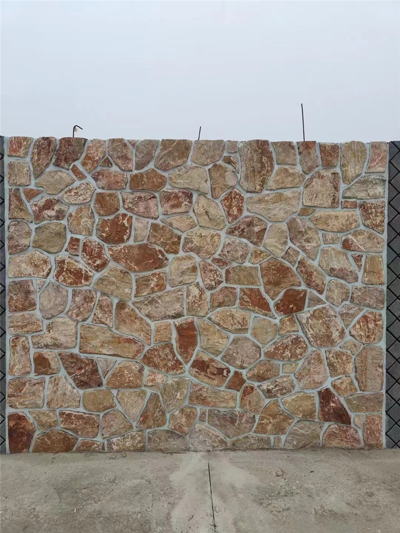 公园小区地铺石砖 黄锈石碎拼地面 庭院外墙 天然乱石片厂家以其未经驯化的野性与独一无er的形态,成为建筑装饰领域中打破常规的先锋元素。它摒弃了标准化石材的规整形态,每一片乱石片都保留着天然的棱角、凹凸不平的肌理与随性的轮廓,仿佛是大自然随手撕裂又抛洒的岩石碎片,大小从巴掌到半人高不等,形状或如锋利的三角,或似扭曲的多边形,甚至带有天然形成的孔洞与裂隙,粗犷中透着原始的力量感,为空间注入自由不羁的灵魂。其色彩丰富多变,从冷峻的灰黑、古朴的棕褐,到清新的青绿、热烈的赭红,天然的色差与纹理随机分布,如同大地泼墨而成的抽象画作。