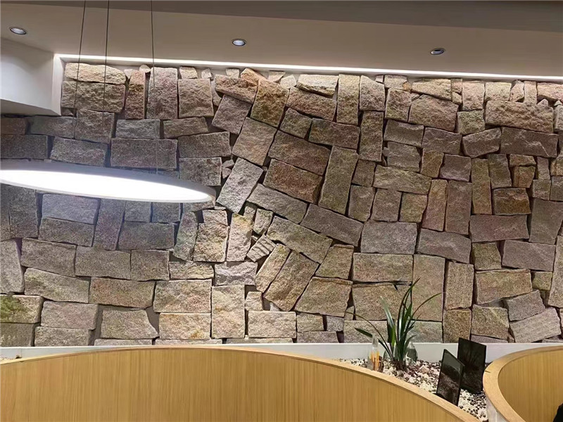 室内场景中,黄锈色垒墙石适合打造个性复古亮点:用于工业风客厅电视背景墙时,选用黄锈色垒墙石局部垒砌,搭配水泥地面、黑色金属电视柜与复古海报装饰,锈色肌理与工业元素相得益彰,瞬间提升空间 “复古硬核” 格调;若偏爱新中式风格,可在餐厅墙面局部使用黄锈色垒墙石,中间嵌入木质格栅与圆形镂空窗,摆放青瓷餐具与枯木摆件,石材的粗犷与中式元素的雅致融合,凸显 “禅意与复古” 的平衡气质;用于玄关墙面时,用黄锈色垒墙石垒砌出不规则造型的背景墙,搭配黑色金属挂钩与原木换鞋凳,进门瞬间即可传递 “自然个性” 的归家仪式感;此外,还可用于阳台休闲区隔墙,选用轻薄款黄锈色垒墙石(厚度 80-100mm),垒砌成半通透的矮墙,搭配原木座椅与吊盆绿植,打造 “室内小庭院” 的休闲氛围,适合追求自然格调的家庭。