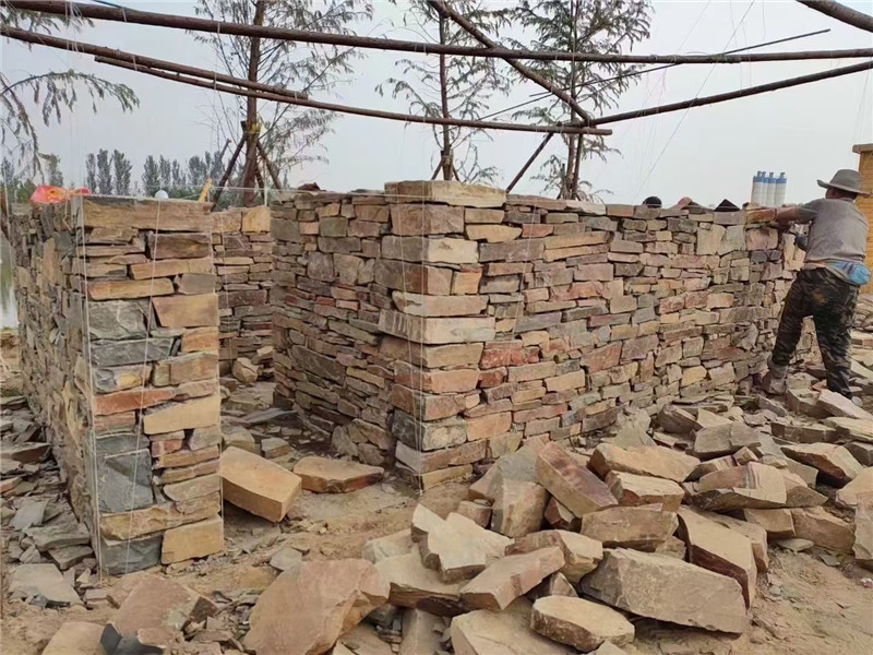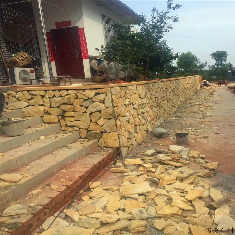 青石板岩砌墙石 暖色系石材 中式别墅 黄锈色毛石垒墙石以天然石材为原料,经自然氧化或人工做旧形成独特的黄锈色调,凭借不规则的块状形态、粗糙的表面肌理与复古的色彩质感,适配乡村风、工业风、新中式等多种装饰风格。它区别于普通垒墙石的单调感,兼具 “锈色的复古韵味” 与 “石材的粗犷质感”,既能作为墙体的功能性构件,又能传递 “岁月沉淀” 的自然气息,其特性与应用可从材质肌理、场景适配、搭配养护三方面展开,助力打造兼具实用性与个性的空间装饰。