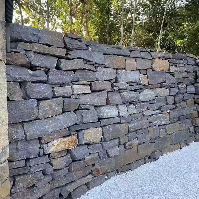在场景应用中,青石砌墙石凭借古朴肌理,成为室内外空间的 “文化焦点”。室外场景里,它是打造传统与自然风格景观的理想材料:用于庭院围墙砌筑时,选用大小错落的青石砌墙石,按 “错缝湿砌法” 施工(用青灰色水泥砂浆勾缝,缝宽 5-8mm),搭配黛瓦压顶、原木栅栏与松竹绿植,石材的青灰调与传统元素相映,营造 “江南小院” 的雅致氛围;用于新中式民宿的外立面装饰,采用规整矩形青石满贴一层墙面,搭配白色木质格栅、浅灰色瓦片与悬挂式红灯笼,青灰石材与中式元素融合,传递 “传统民居” 的温馨质朴感;若作为庭院水景挡土墙,选用厚板青石砌墙石(厚度≥100mm),按 “干砌法” 保留自然缝隙,墙体表面预留排水孔,既能阻挡土壤流失,又能通过青灰石材与水景的搭配,还原 “枯山水” 的禅意意境,适合私人别墅、gao端民宿的室外装饰。