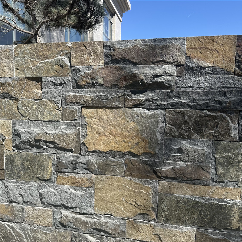 物理性能上,石皮墙文化石兼具轻薄与坚韧的特质。相较于传统毛石,其重量减轻 60% 以上,大幅降低墙体承重压力,尤其适合旧建筑改造或轻型钢结构墙面。天然石材的本质赋予其耐候性强、抗紫外线的优势,户外使用不易褪色开裂;表面的微小孔隙具备一定透气性,能调节墙体湿度,避免冷凝水积聚导致的霉变问题。不过,超薄特性使其抗冲击性较弱,施工与使用中需避免硬物撞击。