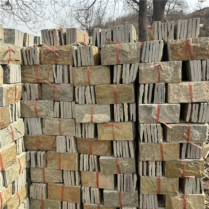芝麻黄蘑菇石花岗岩 户外装饰柏坡黄自然面文化石 不规则毛石片岩装饰风格丰富多样,能为不同空间带来独特魅力,在自然田园风格中,它是主角,毛石文化石以未经雕琢的粗糙质感、不规则外形与质朴色彩,打造出随性自在的氛围,庭院里,用其铺就小径,或堆砌花坛、矮墙,仿若将乡村田园的闲适惬意引入生活,与周边绿植花卉相互映衬,尽显大自然的本真与宁静,乡村复古风格也少不了它。古老建筑常运用毛石文化石,其历经岁月沉淀的痕迹,为空间增添厚重历史感。室内墙面采用毛石装饰,搭配复古木质家具、老式灯具,能让人仿佛穿越回旧时光,感受岁月的悠长韵味,现代简约风格里,它是点睛之笔,虽外形不规则,但经巧妙设计与布局,如在简洁的建筑立面上局部使用,或在现代风格庭院中以规则阵列方式组合成特色景观小品,以简洁背景衬托其独特纹理与形状,形成强烈对比,彰显低调奢华与精致时尚。