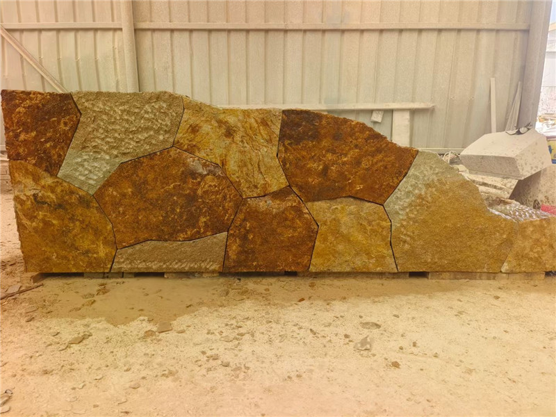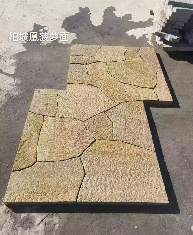 柏坡凰石皮墙文化石 不规则柏坡黄碎拼石 园林乱石铺地石多采用天然石材,保留了石材原始的形状、纹理和色彩,未经过多人工雕琢,充满自然气息。它们大小不一、形状各异,随意地拼接在一起,仿佛是从土地中自然生长出来的一样,能够与周围的自然景观完美融合,无论是青山绿水的自然风景区,还是庭院中的花草树木,都能与之相得益彰,营造出一种质朴、原始的氛围。:每一块乱石都有其独特的纹理,这些纹理或粗犷豪放,或细腻柔和,或如行云流水,或似奇峰罗列。当它们组合在一起时,形成了千变万化的图案,既没有规律可循,又仿佛蕴含着某种自然的秩序,为园林地面增添了无尽的艺术魅力,使每一步都仿佛踏在一幅天然的画卷上。园林乱石铺地石通常选用质地坚硬的石材,如花岗岩、青石等,具有较强的抗压强度和耐磨性,能够承受长期的踩踏和各种自然因素的侵蚀。它们不易破碎、变形,使用寿命长,即使在恶劣的天气条件下也能保持稳定的性能,为园林提供了坚实可靠的地面铺装。乱石铺地的施工相对简单,不需要复杂的工艺和精que的尺寸要求。施工人员可以根据现场的地形和设计需求,灵活地调整石块的排列方式,无需像铺设地砖那样追求严格的整齐划一。这种灵活性使得乱石铺地适用于各种不同形状和坡度的场地,无论是曲折的小径、倾斜的山坡还是不规则的庭院角落,都能轻松驾驭。