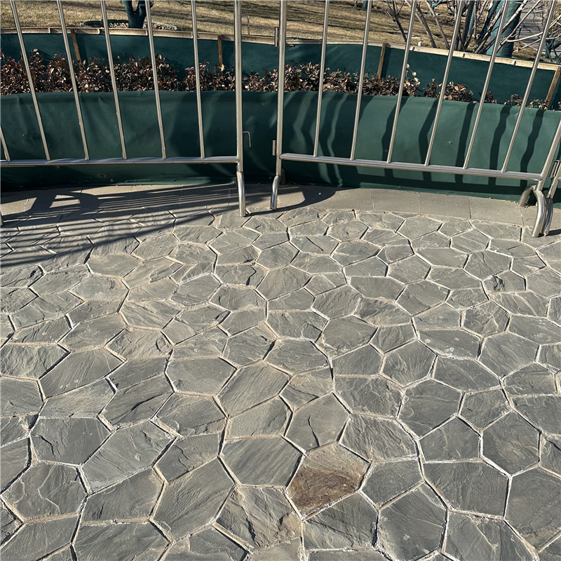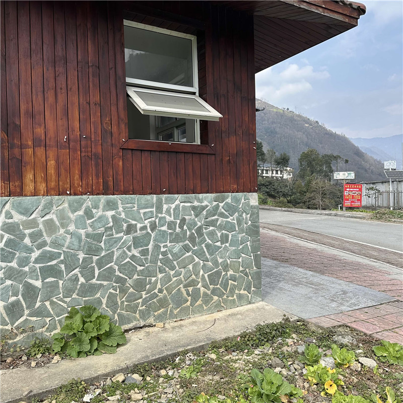 青绿色板岩碎拼石 园林乱石铺地石 生态家装 绿石英蘑菇石贴面用于外墙装饰,宛如将一片葱郁森林的静谧与灵动定格于建筑之上。其不规则的表面在阳光的轻抚下,光影交错,呈现出丰富的层次感,仿佛岁月精心雕琢的痕迹。每一块蘑菇石独特的纹理和色泽,都是大自然鬼斧神工的杰作,或深或浅的绿色调交织,宛如一幅流动的山水画卷,让建筑与周边环境和谐共生,散发出质朴而迷人的气息,彰显出非凡的品味与格调,为居住者营造出一个宁静、优雅且独具个性的生活空间,仿佛置身于自然的怀抱之中,时刻感受着那份清新与惬意。作为一种时尚的建筑建材,无论是在老街道还是在庭院里,建筑外墙以及其它的地方,它有着自然不规则的特点,瞬间让人释放压力,虽然看起来有点凌乱但组合后给人以无穷的想像。现在很多从事艺术行业的人都喜欢用石头来装修房子,碎拼石自然天成的颜色搭配。满足现代人对个性和时尚的追求。碎拼石拥有一种非凡的层状板理,它的纹理错综复杂线条流畅,石质细腻密凑,满足各位小主对大自然向往之心。