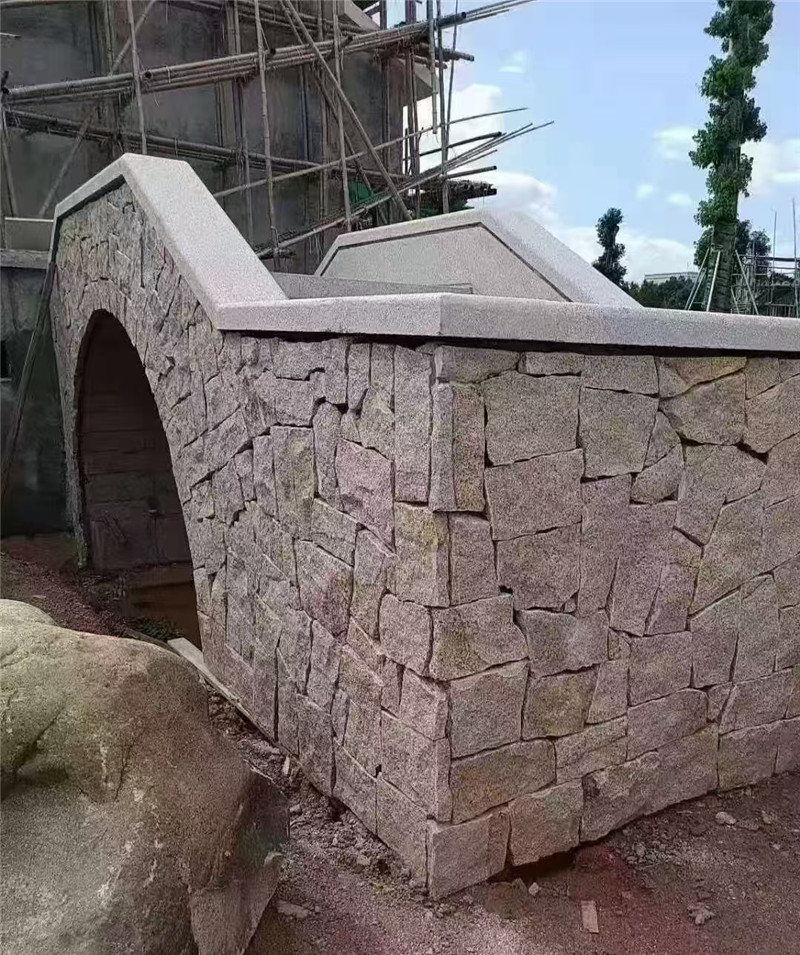 黄木纹乱型石厂家石材 室外文化石背景墙 黄色板岩碎拼石因其纹理酷似虎皮斑纹而得名,色彩丰富,从金黄到棕褐,层次分明,黄木纹乱型石厂家石材每一块都散发着大自然的原始魅力。这些天然特质,让它成为公园景观墙的理想材料,既能彰显自然野趣,又能提升公园的艺术格调,施工前,需要精心规划。根据公园的整体风格、主题以及周边环境,确定景观墙的位置、高度和长度。同时,设计师要依据虎皮石碎块的大小、形状和色泽,构思出独特的拼接图案。可以是规则的几何图形,展现秩序美感;也能是自由随性的组合,营造灵动氛围,室外文化石背景墙正式施工时,步是搭建稳固的墙体结构。选用坚固的砖石材料作为基础,黄色板岩碎拼石确保墙体能够承受虎皮石碎拼的重量。在墙面基层涂抹一层厚度均匀的水泥砂浆,为后续粘贴黄木纹乱型石厂家石材碎块提供良好的粘结力,接着,就到了最考验工匠技艺的拼接环节。按照预先设计的图案,将虎皮石碎块逐一粘贴到墙面上。粘贴过程中,要注意碎块之间的紧密贴合,缝隙宽度尽量保持一致,室外文化石背景墙一般控制在2-4公分厚。利用水平尺和靠尺,随时检查碎块的平整度和垂直度,确保墙面整体的平整与美观。对于形状特殊的碎块,需要现场进行切割和打磨,黄色板岩碎拼石使其与周围的碎块完美拼接,完成拼接后,用专用填缝剂填充缝隙。填缝剂的颜色要与虎皮石的颜色相协调,既能增强景观墙的整体感,又能起到防水、防污的作用。填缝完成后,对墙面进行细致清理,去除表面残留的填缝剂和灰尘,让虎皮石的纹理和色彩清晰展现。