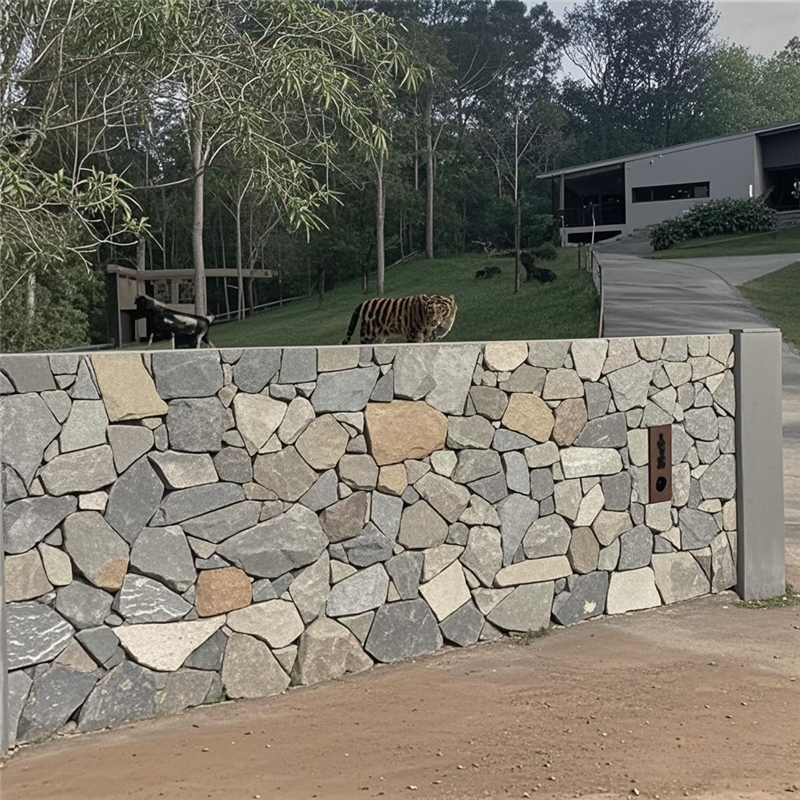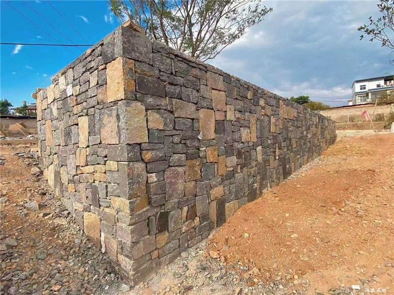 背景墙石头 建造花池 宝石蓝不规则文化石 天然碎拼乱形石通常由板岩、砂岩或其他天然石材切割而成,表面呈不规则颗粒状或碎片状,保留了石材的自然纹理和色彩。其特点包括:多样性:颜色丰富(如灰色、黑色、蓝色、黄色等),纹理随机分布,每片石材独特。耐久性:天然石材结构致密,抗压强度高(可达100MPa以上),耐磨、耐候,适合室内外长期使用。环保性:无毒无害,符合环保要求,不会释放有害物质。应用领域建筑外墙装饰:用于墙面覆面,提升建筑质感,营造自然质朴风格。地面铺设:适用于庭院、园林、广场等地面,防滑且增添自然气息。室内装饰:墙面、背景墙、吧台等,通过不规则拼接创造艺术效果。景观设计:用于石桥、石阶、花坛边界,与植物搭配形成自然景观。