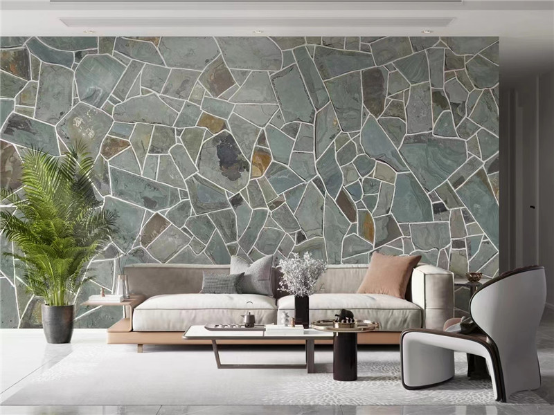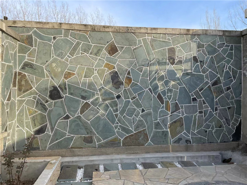 雅典娜灰文化石 绿色蘑菇石碎拼石 电视背景 不规则青石板板岩以天然板岩为原料,保留岩石原生的层状结构与非规整形态,凭借细腻的层理纹、丰富的色调层次与轻薄的块状特性,适配乡村风、自然系、工业风等多种装饰风格。它区别于普通规整石材的刻板感,通过大小错落的形态与深浅交织的纹理,既能打造空间的自然野趣,又能传递 “源于山野” 的原始质感,其特性与应用可从材质肌理、场景适配、搭配养护三方面展开,助力打造兼具个性与实用性的空间装饰。