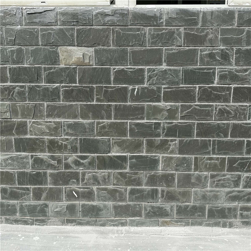 室内场景中,不规则板岩适合打造个性自然亮点:用于客厅电视背景墙局部时,选用浅灰色不规则板岩拼接成不规则造型,周边搭配浅灰色乳胶漆墙面、原木家具与绿植装饰,石材的层理纹与木材的温润碰撞,营造 “自然简约” 的氛围,为空间注入山野气息;用于卫生间墙面时,选用深灰色防水处理的不规则板岩,按 “小块密铺” 方式铺贴,缝隙用灰色环氧美缝剂填充,搭配白色卫浴洁具与浅木色浴柜,深色石材能凸显空间质感,同时层理纹可隐藏轻微污渍;若用于厨房防溅墙,选用墨绿色不规则板岩,表面涂刷耐高温密封剂,搭配白色橱柜与浅灰色台面,绿色石材能为厨房注入自然活力,不规则形态则打破厨房的单调感,适合追求个性的家庭。
