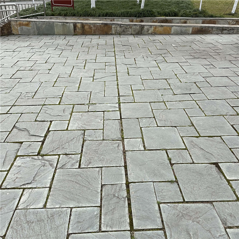 搭配与养护方面,需注重 “风格协调” 与 “针对性防护”:不规则板岩的自然肌理需避免与过于精致的材质(如亮面大理石、水晶吊灯)大量搭配,以防风格割裂,建议以中性色(白、灰、原木色)为空间基底,通过石材自然过渡,可搭配原木、藤编、粗陶、金属等材质 —— 原木的温润能强化自然氛围,藤编的纹理可增添休闲感,金属的利落则能提升现代感。养护上,因表面存在细微孔隙,铺贴前需涂刷石材专用密封剂,封闭孔隙以防污渍渗透;日常清洁用湿布或软毛刷蘸中性清洁剂(如洗洁精兑水)擦拭,顽固污渍可轻轻刷洗,禁止用酸性清洁剂(如白醋、洁厕灵),防止腐蚀石材表面与层理纹;室外使用的不规则板岩,每 2-3 年检查缝隙填充情况,及时补填细砂或勾缝剂,并涂刷耐候性密封剂,抵御日晒雨淋的侵蚀;室内使用时,避免硬物尖锐撞击石材边缘,防止破损,若局部破损,可更换单块板材,不影响整体美观,确保不规则板岩长期保持自然野趣的质感。