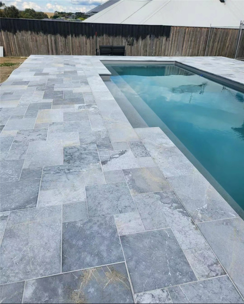 九宫格石材 飘窗装饰 海洋蓝莱姆石碎拼 灰色洞石文化石以灰色为主色调,颜色从深灰到浅灰、灰白等渐变,能为空间营造出沉稳、宁静、高雅的氛围,可与多种装修风格和色彩搭配方案相融合。具有独特的纹理,如自然的条纹、漩涡纹、云纹等,这些纹理自然流畅,仿佛是大自然的手笔,每一块灰色洞石文化石的纹理都独特,展现出天然石材的艺术魅力。其表面有大小不一、分布不均的孔洞,这些孔洞是在形成过程中二氧化碳气体逸出留下的痕迹,增加了石材的立体感和层次感,使其更具质感和古朴韵味。质地相对较软,相较于花岗岩等石材,灰色洞石文化石的硬度较低,这使得它在加工和安装过程中相对容易,但在搬运和使用时需要注意避免碰撞和刮擦,以免造成损坏。天然灰色洞石文化石重量较重,不过也有一些人造的灰色洞石文化石通过特殊工艺减轻了重量,同时保留了其外观和质感,方便施工和安装。虽然质地较软,但灰色洞石文化石仍具有一定的强度,能够承受一定的压力和重量,适用于墙面、地面等不同部位的装饰。主要成分是碳酸钙等矿物质,具有较好的化学稳定性,但要避免与强酸、强碱等腐蚀性物质接触,以免发生化学反应,损坏石材表面。