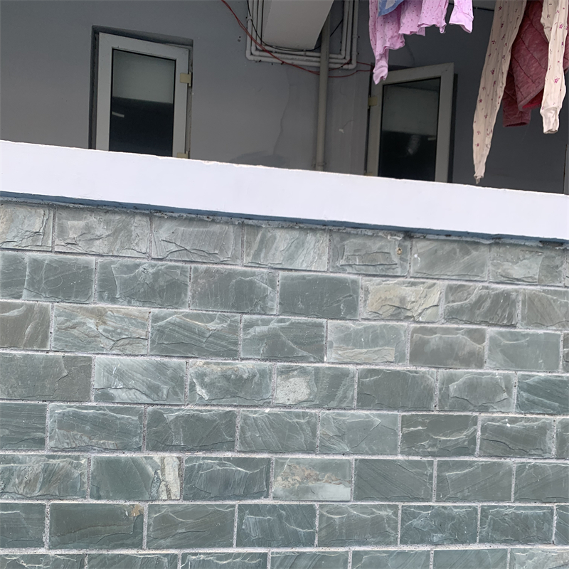 维护方面,日常清洁用清水或中性清洁剂擦拭即可,避免使用酸性试剂(以防腐蚀表面纹理)。户外铺设时,接缝处需用青灰色填缝剂填充,每年春季检查并补填脱落部分,防止杂草滋生;若表面出现顽固污渍,可用软毛刷蘸少量小苏打溶液轻刷,再用清水冲洗。天然青石板以不事雕琢的本真面貌,将自然的岁月痕迹融入建筑肌理,既承载着实用功能,又以沉静的色调与纹理,成为空间中传递时光温度的介质,尽显 “大道至简” 的东方美学。