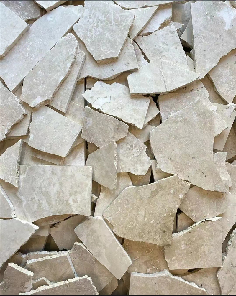 米白色洞石大理石石材 水磨花岗石 色泽柔和 白色莱姆石碎拼主要呈现出纯净的白色调,这种白色柔和而不刺眼,能为空间营造出简洁、优雅、纯净的氛围,给人一种清新、舒适的视觉感受。莱姆石本身具有自然形成的纹理,碎拼后这些纹理相互交织、错落有致,每一块碎拼石材的纹理都独一无er,形成了一种自然而富有艺术感的图案,为装饰增添了独特的韵味和质感。由不同形状和大小的莱姆石碎片拼接而成,打破了常规石材的规整性,呈现出一种自由、随性的美感,给人以活泼、灵动的感觉,能够为空间带来独特的装饰效果,增加空间的趣味性和层次感。莱姆石属于质地相对较轻的石材,其碎拼在搬运和施工过程中相对较为方便,减轻了工人的劳动强度,也便于在一些对重量有一定限制的场所使用。具有适中的硬度,既能够承受一定的压力和摩擦,不易出现明显的划痕和损坏,满足日常使用的需求,又方便进行切割、拼接等加工操作,能够根据设计要求制作出各种形状和图案。莱姆石具有良好的透气性,这使得它在用于墙面或地面装饰时,能够调节室内的湿度,有助于保持室内环境的舒适。白色莱姆石碎拼是天然石材,不含有害物质,不会释放jia醛、苯等对人体有害的气体,对环境和人体健康无危害,是一种绿色环保的建筑装饰材料。
