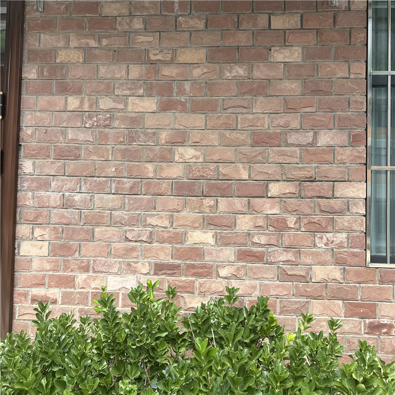 施工需注重预处理,红砖文化石表面可能存在浮灰,需用硬毛刷清理后涂刷固化剂,防止铺贴时掉粉;基层需平整干燥,用薄层瓷砖胶(厚度 3-5mm)粘贴,避免空鼓,接缝预留 3-5mm,用浅灰色或米白色勾缝剂填充,既凸显砖缝的线条感,又便于后期清洁。大面积铺贴时,每 3-5㎡设一道伸缩缝(填耐候胶),应对温度变化导致的胀缩。