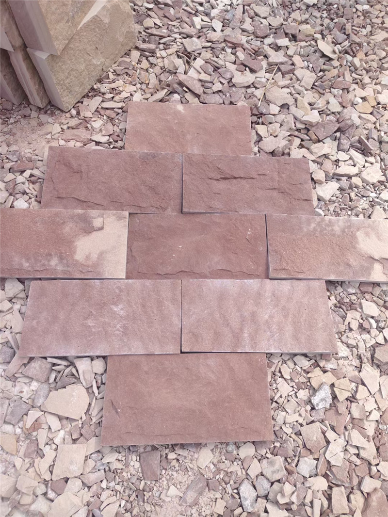 高粱红碎拼石 中式园林 粉红色蘑菇石 红砖文化石背景墙是一种以黏土为主要原料,经成型、高温烧制(1000-1100℃)而成的仿古建筑石材,因呈现自然砖红色调得名,既保留了传统红砖的质朴质感,又通过模具工艺复ke出风化、劈裂等自然肌理,单块尺寸多为 10-25cm,厚度 5-8cm,表面可能带有窑变形成的深浅色块、细碎裂纹或手工制坯的指印痕迹,每一块都带着烧制时的温度印记。