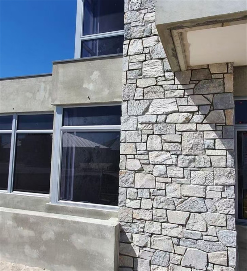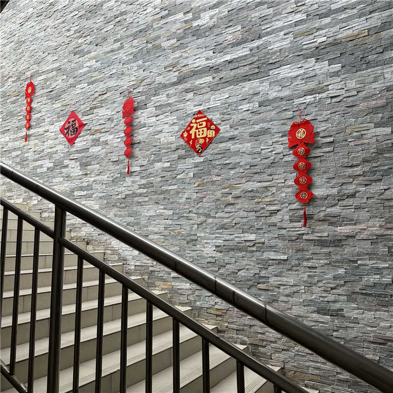 施工需注意基层处理:墙面平整度误差需≤5mm,用水泥砂浆找平后涂刷界面剂增强粘结力;铺贴时采用专用瓷砖胶(避免普通水泥收缩开裂),单块石材四周留 2-3mm 缝,大面积施工需每 3㎡设一道伸缩缝(填耐候胶)。维护简便,日常用湿布擦拭即可,若沾染油污,可用弱碱性清洁剂清洗,避免用钢丝球以防刮花表面纹理。其性价比突出,价格仅为天然青灰色文化石的 50%-70%,且色泽均匀度更高,适合预算有限却追求自然风格的装饰需求,同时可通过调整模具样式,灵活适配新中式、工业风等多种设计语言。