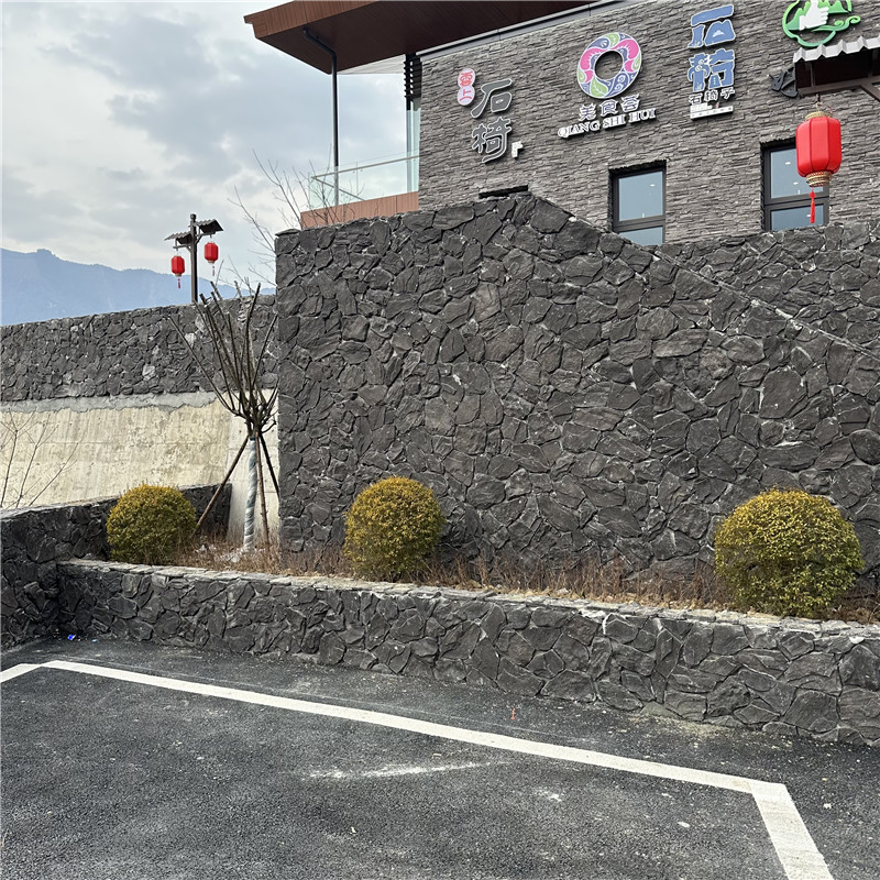 应用场景极为广泛:户外可用于庭院步道、水景驳岸、假山叠石,其防滑表面与自然形态能无缝融入园林景观,搭配绿植或流水时,仿佛山间野趣的微缩再现;室内则适合作为背景墙、玄关隔断,粗犷的石片与现代家居形成材质碰撞,营造质朴而高级的空间氛围,尤其适配侘寂风、工业风等设计风格。此外,因其耐污性强,也常用于商业空间(如咖啡馆、民宿)的墙面或地面装饰,减少后期维护成本。