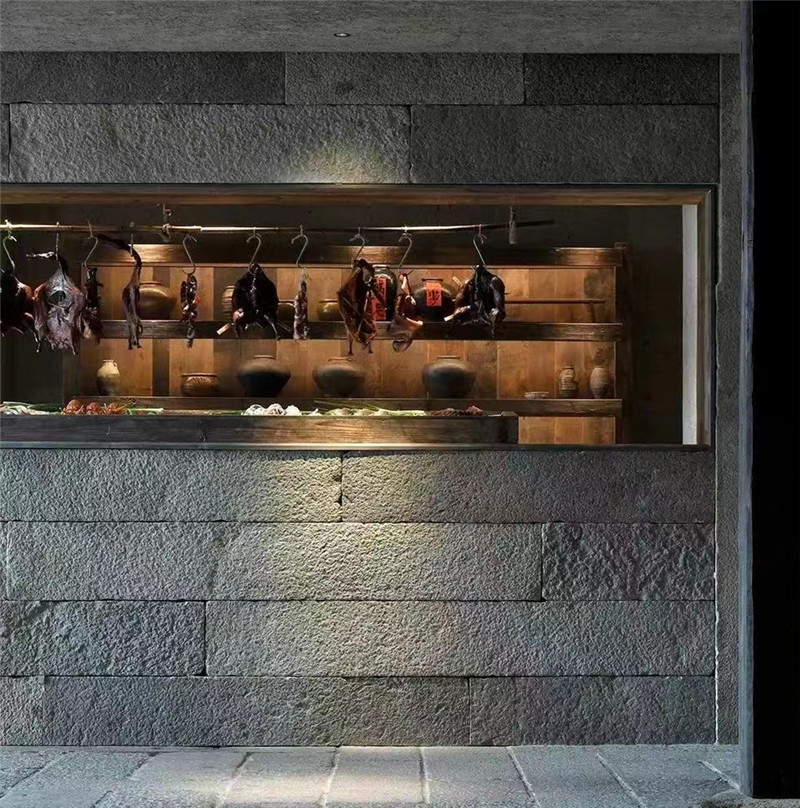 室内黑色文化石背景墙 不规则片石碎拼石材 黑色蘑菇石自然面 保留了石材天然的纹理和色泽,呈现出质朴、原始的美感,每一块蘑菇石的纹理和形状都独特,能够为空间增添自然气息和艺术氛围。其表面具有中间凸起、四周凹陷的蘑菇状造型,这种独特的形状使得石材具有强烈的层次感和立体感,能够在视觉上形成独特的焦点,增强装饰效果。属于天然石材,不含有害物质,对人体和环境无害。同时,石材质地坚硬,具有良好的耐磨性、抗压性和耐候性,能够经受住时间和自然环境的考验,使用寿命较长。质地坚硬,结构致密,具有良好的耐磨性和耐腐蚀性,颜色丰富,如灰色、黑色、红色等,适用于各种建筑外墙、地面及景观装饰。
