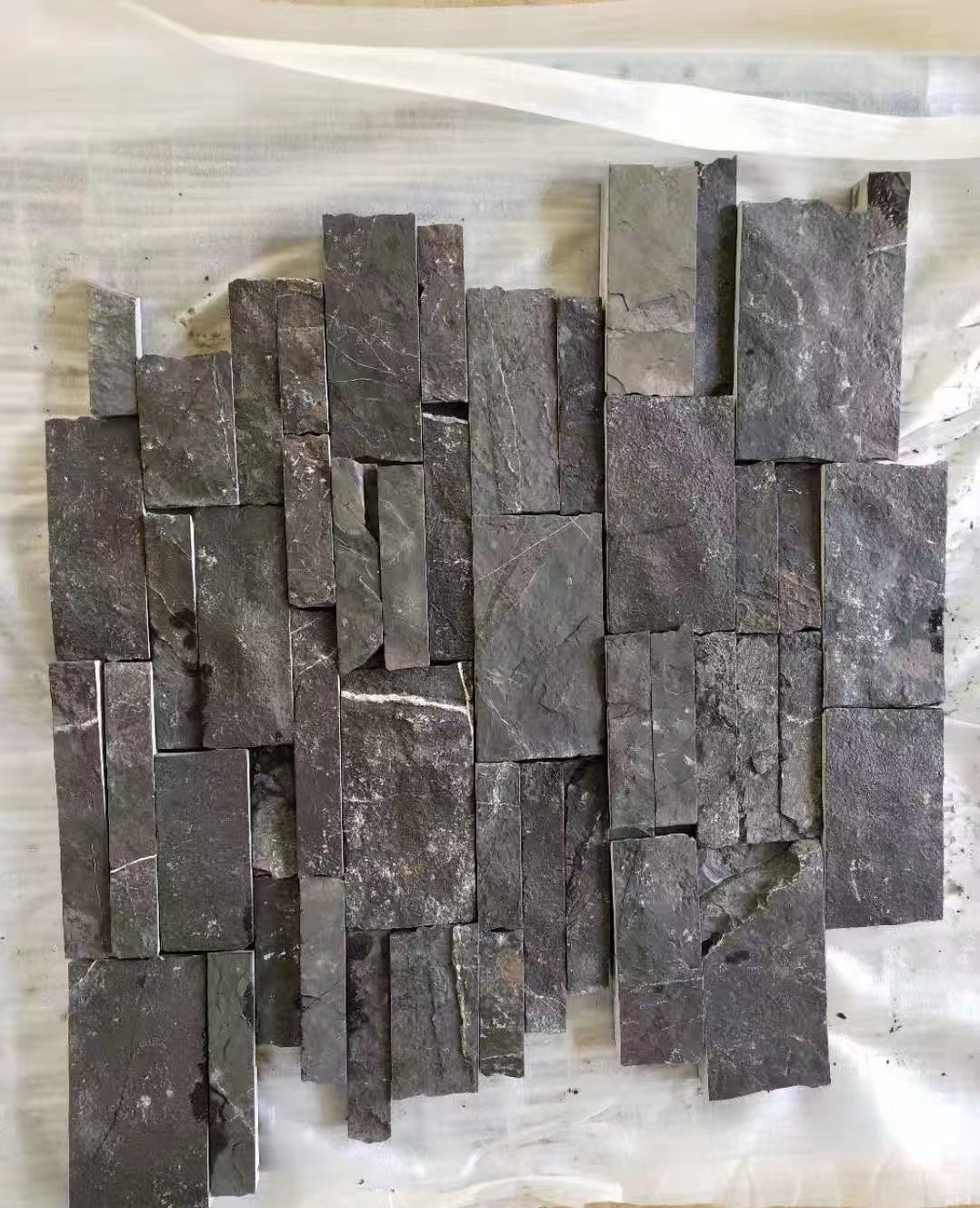 不规则片石碎拼石材 黑色蘑菇石自然面 室内黑色文化石背景墙具有独特的黑色色调,深沉而神秘,能为空间营造出庄重、高雅的氛围。其表面纹理丰富多样,如天然的岩石纹理、斧凿痕迹等,每一块都特别,展现出大自然的鬼斧神工。经过长期的地质作用形成,结构紧密,质地坚硬,具有较高的抗压强度和耐磨性,能够承受一定的外力冲击和摩擦,不易损坏,使用寿命较长。天然黑色文化石是从自然界开采而来,不含有害物质,对人体和环境无害,符合现代人们对环保材料的需求。安装方便:重量相对较轻,且形状和尺寸多样,可根据设计需求进行切割、拼接,安装过程较为简便,能够提高施工效率。