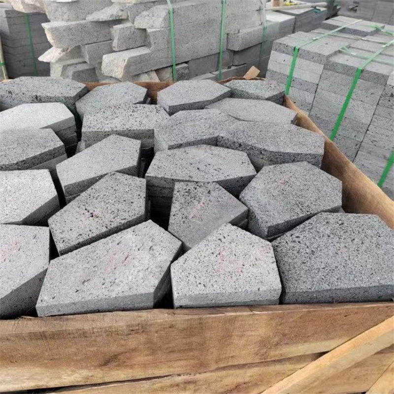 在材质特性方面,灰色火山岩有着与生俱来的优势。它质地坚硬,抗风化、耐磨损,能够适应不同的环境条件,无论是潮湿的南方还是干燥的北方,都能保持长久的稳定性。同时,火山岩多孔的结构使其具备良好的透气性和吸音性,不仅能调节室内湿度,还能有效减少噪音干扰,为人们营造舒适安静的生活空间。此外,作为天然的环保材料,灰色火山岩不含有害物质,为健康的居住环境提供了保障。