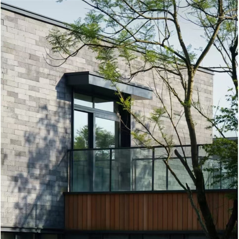 从外观上看,灰色火山岩装饰墙充满了自然的原始质感。其表面凹凸不平,密布着因岩浆快速冷却形成的大小气孔,这些蜂窝状的孔洞如同岁月留下的独特印记,赋予石材一种未经雕琢的粗犷美感。灰色的主色调内敛而含蓄,从浅灰到深灰的微妙渐变,如同水墨画中的层层晕染,在光影的变化下,呈现出丰富的层次感。光线洒在墙面上,凹陷处形成的阴影与凸起部分的反光相互交错,让整个墙面仿佛流动的灰色云海,静谧中又蕴含着动态之美。