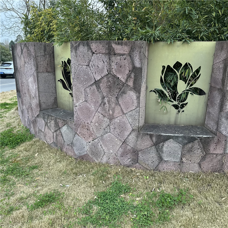 养护的关键是保持气孔通畅与外观洁净。日常清洁用清水冲洗或软毛刷轻擦,孔隙内的灰尘可用低压气泵吹净,避免用高压水枪强力冲洗,以防气孔结构受损。户外使用时,若表面生长青苔,可保留部分增添自然野趣,过度蔓延则用竹刷清理。发现石材松动时,及时用同材质碎石与专用胶填补缝隙,避免结构不稳。无需频繁使用防护剂,以免堵塞气孔,每年用中性清洁剂整体清洁一次即可,保持其天然呼吸性能。