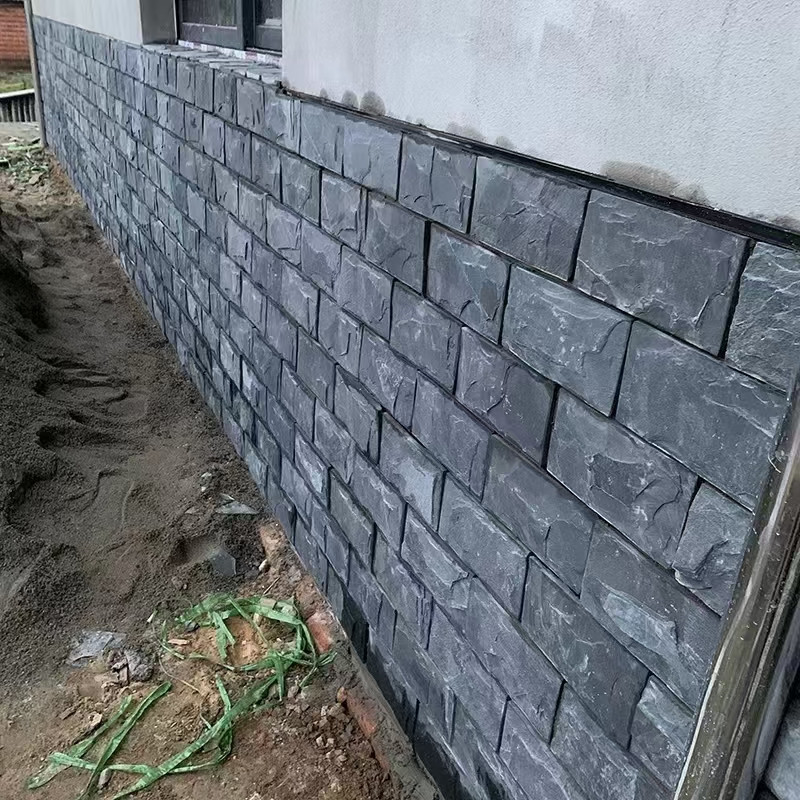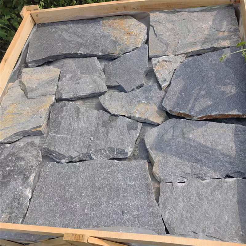 黑色流水石板 天然蘑菇石 室外幕墙 黑石英碎拼石文化石是由天然黑色石材破碎加工而成的不规则块状装饰材料,以其深邃的色调与粗犷的质感,成为空间设计中营造对比与焦点的常用元素。其原料多为玄武岩、黑砂岩、墨玉等,经破碎、筛选后保留自然棱角,单块大小从几厘米到三十厘米不等,既延续了天然石材的坚硬特性,又通过破碎形态打破了规整石材的刻板印象,在现代与自然风格中均能灵活适配。