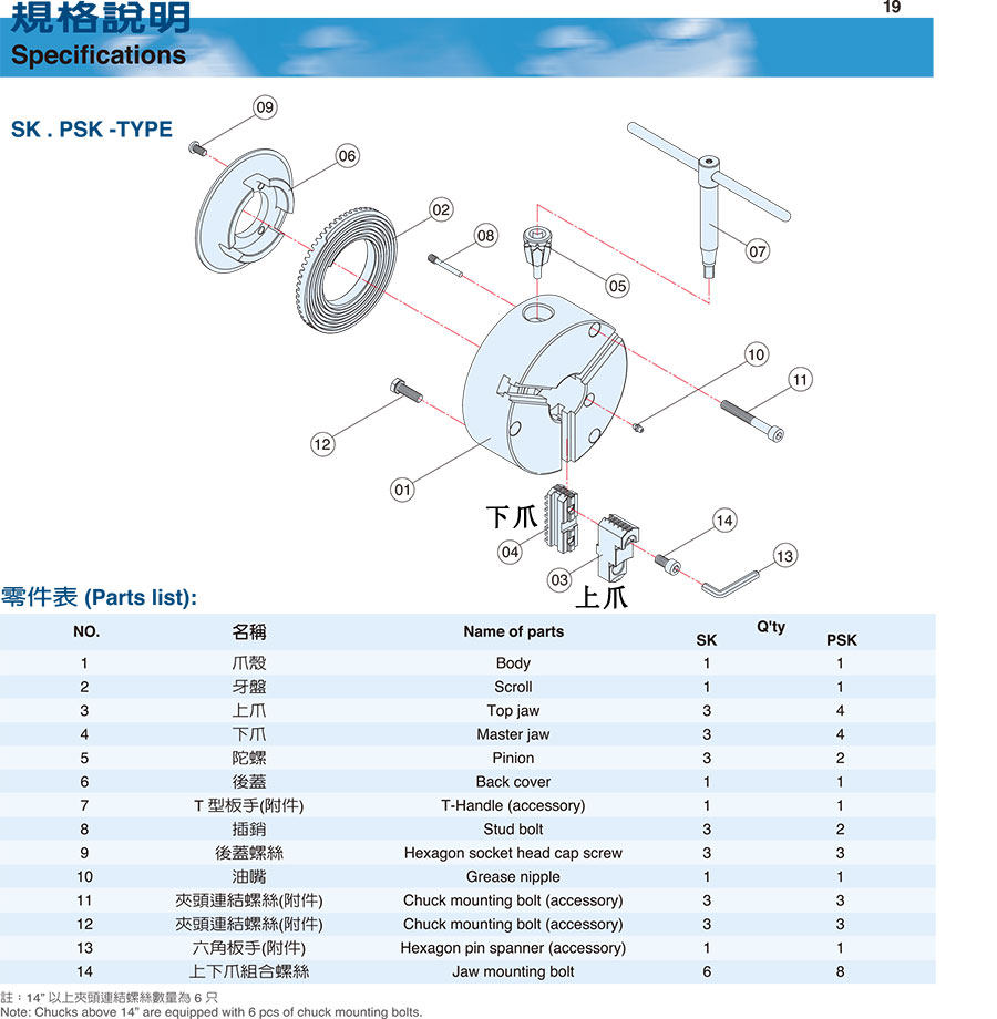 千岛手动卡盘SK系列零部件示意图