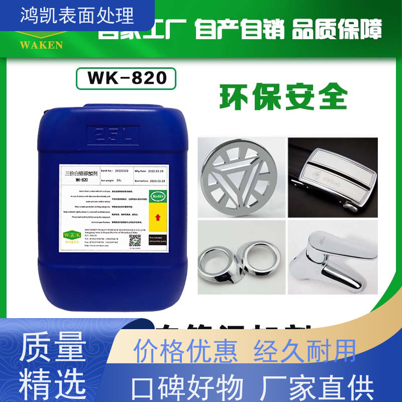 三价白铬添加剂产品简介 三价白铬添加剂是一种环保型电镀化学品,主要用于替代传统六价铬(Cr??)工艺,符合全球日益严格的环保法规(如欧盟RoHS、REACH)。其核心成分为三价铬离子(Cr3?),通过有机配位剂(如甲酸盐、乙酸盐)稳定存在,确保镀液的高效性和镀层的均匀性。相较于六价铬,三价白铬添加剂毒性显著降低(LD50>2000 mg/kg),废水处理更简便(Cr3?浓度<1.0 mg/L即可达标)。典型镀层呈现银白色至蓝白色,广泛应用于装饰性及功能性电镀领域。目前市场主流品牌包括麦德美(Atotech)、赛德克(Covestro)等,产品细分型号可满足不同行业需求,如无钴配方(避免过敏)或高耐温型(>300℃)。