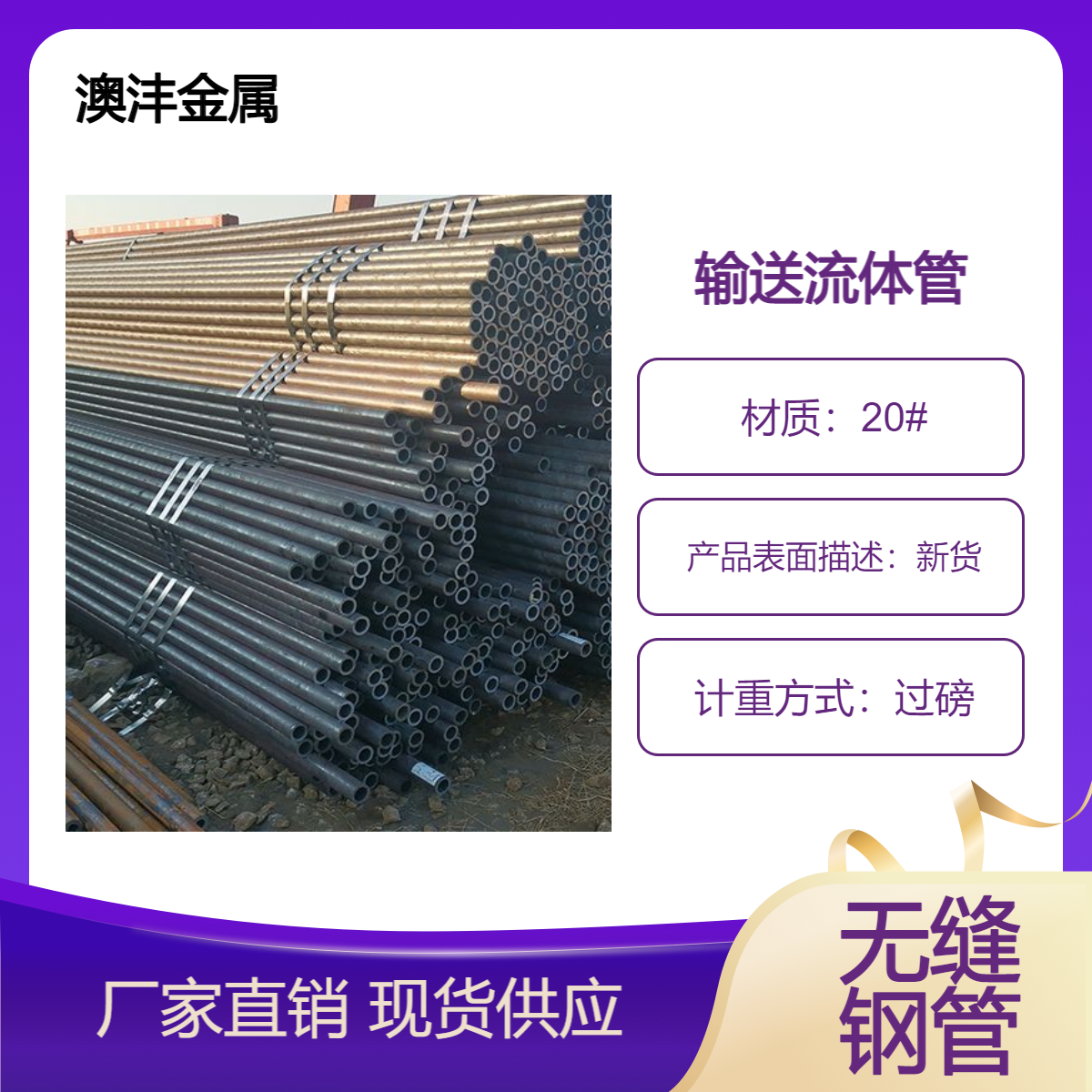 澳沣10/20/ASTM/A106B/A106C输送流体管 无缝钢管GB/T8163-2008