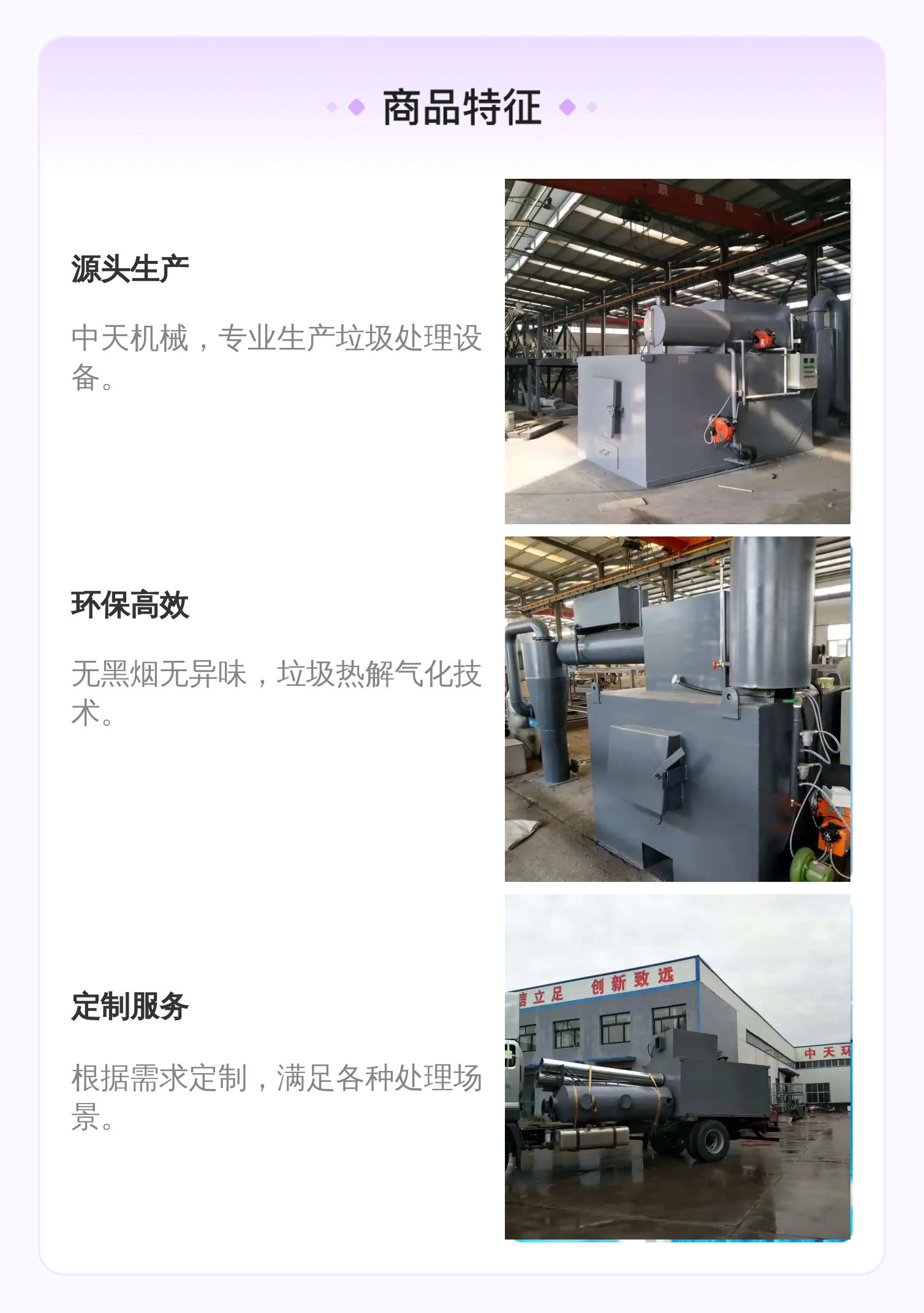 中天机械源头无黑烟无异味垃圾焚烧处理设备