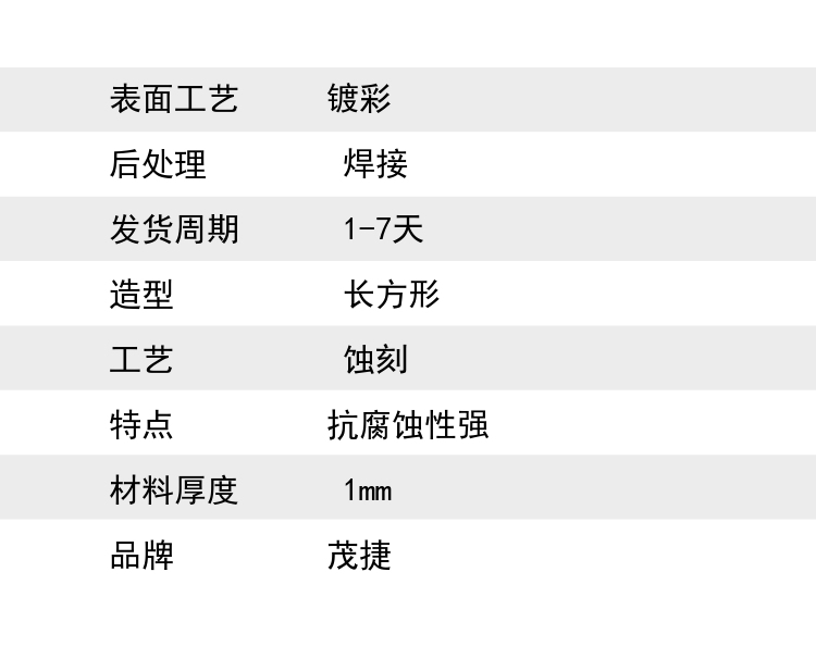 防腐蚀 拉丝 冲压 背胶 电镀 |