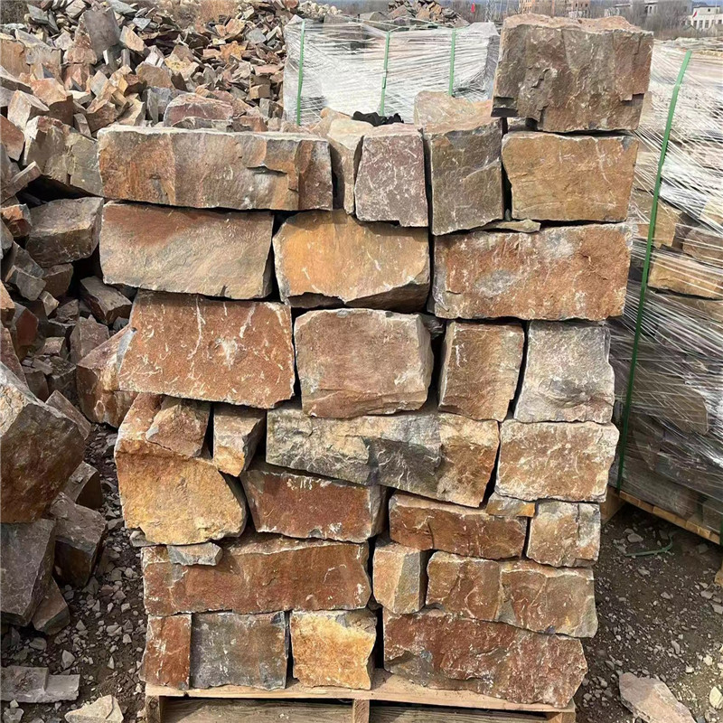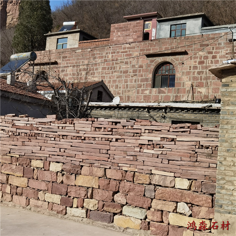 适用场景聚焦于营造乡土与人文氛围。乡村民宿外墙用高粱红砌墙石砌筑,搭配灰瓦、木窗与玉米囤等农俗装饰,还原北方乡村的质朴风貌,红色墙体在白雪映衬下更显生机;中式庭院的围墙选用高粱红砌墙石,与月洞门、竹篱笆组合,红色与青色的对比强化传统园林的色彩韵律,墙面攀爬的牵牛花更添野趣。现代景观中,可将其与混凝土、玻璃等材料结合,如用高粱红砌墙石砌筑花池边框,搭配不锈钢水景装置,通过材质碰撞平衡乡土与现代感;文化广场的背景墙用其拼砌出简化的高粱穗图案,强化地域农业文化符号,唤起观者的情感共鸣。