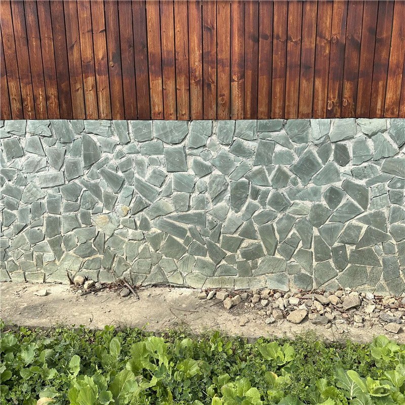 绿色冰裂纹碎拼石在物理特性方面表现出色。它多选用花岗岩、砂岩、板岩等硬度较高的石材为原料,质地坚硬密实,莫氏硬度可达 6-7 级,具有良好的抗压、耐磨性能,能够承受长期的踩踏与外力冲击,适用于地面、墙面等多种装饰区域。不规则的碎拼形态使得它们在拼接时可以形成犬牙交错的咬合结构,搭配水泥砂浆或石材专用粘合剂,能构筑起稳固的整体,即便局部受损也不易大面积脱落。虽然其表面凹凸不平、孔隙较多,但经过专ye的防水防污处理后,可有效填充缝隙,防止污渍渗入与水分侵蚀,同时保留石材天然的透气性与原始肌理。