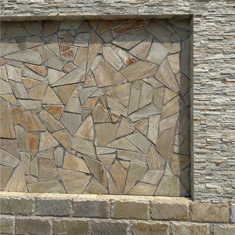 冰裂纹文化石 复古餐厅 锈石英文化石景墙 黄木纹碎拼石具有如木纹般的天然纹理,细腻且富有层次感,黄木色的纹理相互交织,如同树木的年轮,每一块碎拼石的纹理都独yi无二,能为空间增添自然、温暖的氛围,营造出仿佛置身于森林中的感觉。颜色以黄色为主色调,色调柔和、温暖,给人一种温馨、舒适的视觉感受,能够与各种装修风格相融合,无论是现代简约、中式古典还是欧式田园风格,都能起到很好的装饰效果。由不规则的碎块拼接而成,没有固定的形状和规格,这种自然的形态打破了常规石材的规整性,展现出一种随意、自由的美感,使空间更具个性和艺术气息。属于天然石材,具有较高的硬度和强度,耐磨性好,能够承受一定的压力和摩擦,不易出现划痕或破损,适用于墙面、地面等多种装饰部位,能长期保持良好的使用状态。具有较好的耐酸碱性和耐腐蚀性,能够抵御外界环境中化学物质的侵蚀,不易受到酸雨、污渍等的影响,保持石材的色泽和质地,使用寿命较长。表面相对粗糙,防滑性能良好,即使在潮湿的环境下,也能提供足够的摩擦力,防止滑倒,保障使用安全,因此适用于卫生间、厨房、室外露台等容易积水的区域。碎拼石的不规则形状使其在安装时具有很高的灵活性,可以根据不同的空间形状和尺寸进行自由拼接,能够适应各种复杂的建筑造型和装饰要求,尤其适合用于一些不规则的角落或特殊形状的区域,可充分利用空间,减少材料浪费。日常维护较为简单,只需定期用清水或温和的清洁剂擦拭,去除表面的灰尘和污渍即可。由于其材质稳定,不易褪色或变形,不需要特殊的保养措施,降低了维护成本和工作量。