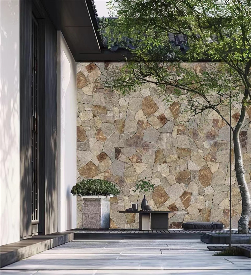 从装饰应用角度,冰裂纹文化石适配多种风格场景。在中式园林与新中式空间中,它是营造古典意境的绝jia材料,用于铺设庭院小径,搭配假山流水、竹影婆娑,展现 “曲径通幽” 的东方雅韵;作为景墙装饰,与白墙黛瓦结合,形成 “留白” 般的美学效果,尽显东方美学的含蓄与诗意。在日式枯山水庭院里,冰裂纹文化石与砾石、石灯笼搭配,强化禅意氛围,诠释侘寂美学中 “不完美之美” 的哲学。在现代简约风格的室内设计中,冰裂纹文化石作为电视背景墙或装饰隔断,与简洁的家具、明亮的灯光形成鲜明对比,为空间增添艺术细节与质感;在商业空间如茶室、书店,冰裂纹文化石墙面能够营造出宁静、雅致的氛围,吸引顾客驻足。此外,通过创意的拼接方式,如斜拼、错拼或局部镶嵌金属条,还能进一步增强空间的层次感与现代感,让冰裂纹文化石成为提升空间格调、传递独特美学的理想装饰元素。