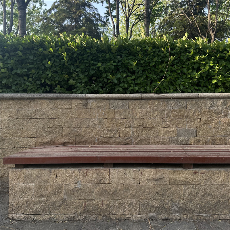 从材质特性来看,虎皮黄蘑菇石多选用花岗岩、砂岩等硬质石材,经特殊工艺切割与打磨而成。其质地坚硬致密,莫氏硬度可达 6 级左右,具备出色的抗压与耐磨性能,能够承受长期踩踏与自然环境的考验,适用于人流量较大的公共场所地面铺设,或是建筑外立面的装饰。同时,该石材具有良好的耐候性,抗风化、耐腐蚀能力强,在紫外线照射、风雨侵蚀下,色彩依然持久鲜艳,不易褪色、剥落;其较低的吸水率使其不易受潮湿环境影响,减少了霉菌滋生与石材病变的风险,日常维护简便,使用寿命长。此外,虎皮黄蘑菇石天然环保,无放射性物质,可安全应用于各类室内外空间。