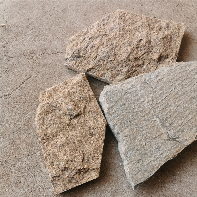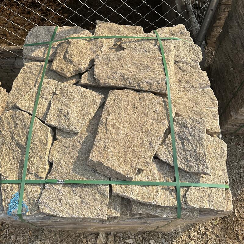 黄锈石文化石 芝麻黄蘑菇石 浴室铺贴 不规则乱形碎拼石作为一种极具特色的装饰石材,凭借其独特优势,在景观与室内装饰领域备受青睐。不规则碎拼石由形状、大小各异的石块拼接而成,没有固定模式,每一块都独特。铺设后,图案随机且富有变化,仿佛是大自然的神来之笔,营造出灵动、质朴的氛围。与规整的石材相比,碎拼石更具艺术感,能为空间注入自然活力,避免单调乏味。碎拼石选材广泛,常见的有大理石、花岗岩、板岩等,能依据不同的设计风格和预算选择。像追求古朴风格,可选用板岩碎拼石;想要奢华大气的效果,大理石碎拼石是理想之选。这不仅丰富了设计的多样性,还让碎拼石能适配不同档次的项目。碎拼石多采用天然石材制成,具备天然石材的高强度和耐磨性。这些石材经过长期风化和地质作用,结构稳定,能抵御日常使用中的磨损,在户外经受风吹雨打也不易损坏,延长了装饰面的使用寿命。碎拼石的不规则形状使其在安装时更具灵活性,能应对各种复杂的场地和造型需求,尤其适合异形空间。此外,碎拼石常利用石材加工的边角料制作,降低了材料成本,减少了资源浪费,在满足设计要求的同时,控制了项目造价。